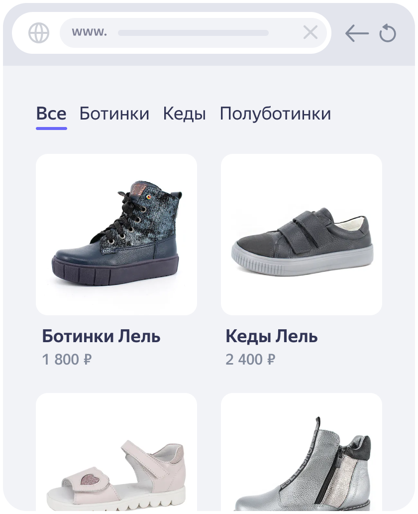 Яндекс Бизнес создаст объявления с вашими товарами и магазином. Вам нужно выбрать, куда будут попадать потенциальные клиенты, когда кликнут на рекламу.