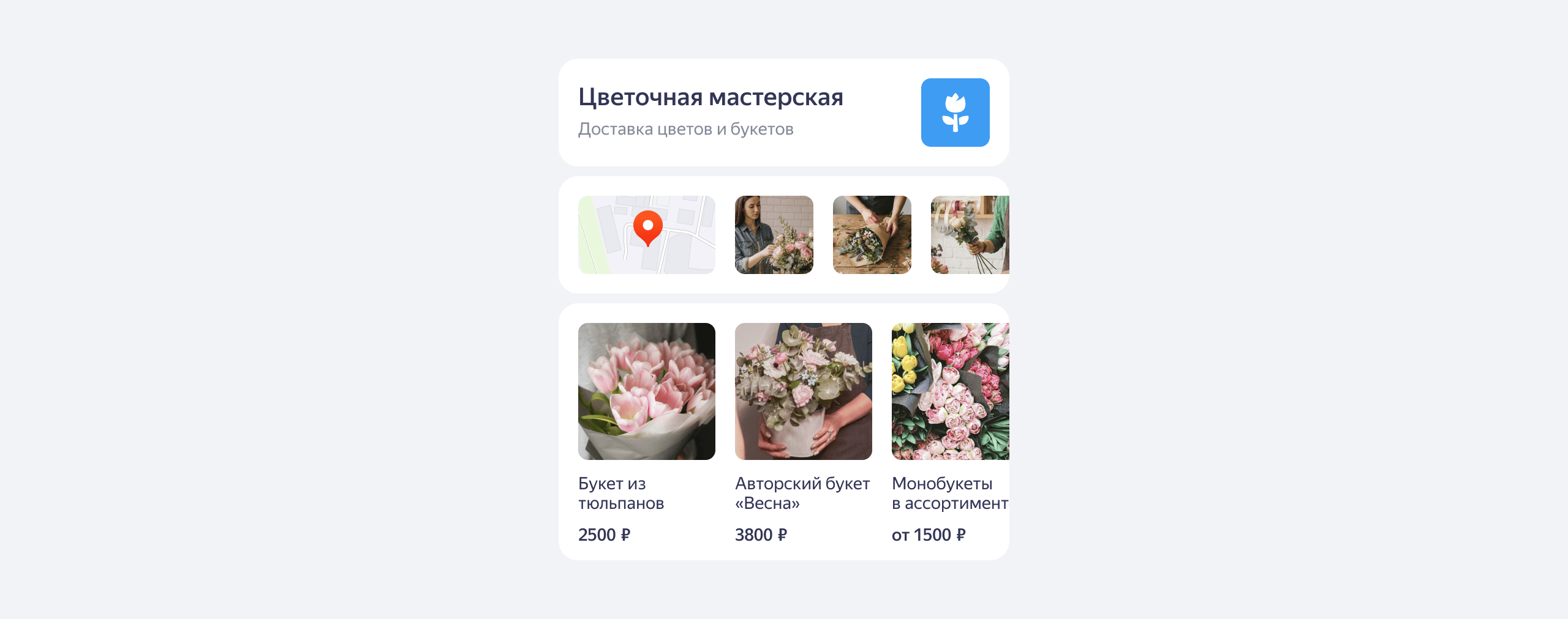 Расскажите пользователям о скидках, специальных предложениях или новой услуге. Акция появится прямо в объявлениях.
