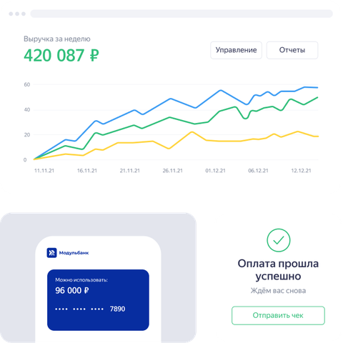 Он может формировать за вас бухгалтерские отчёты и общаться с налоговой, подключать кассу и эквайринг. Если у вас пока нет карты Модульбанка, оформите её прямо сейчас.